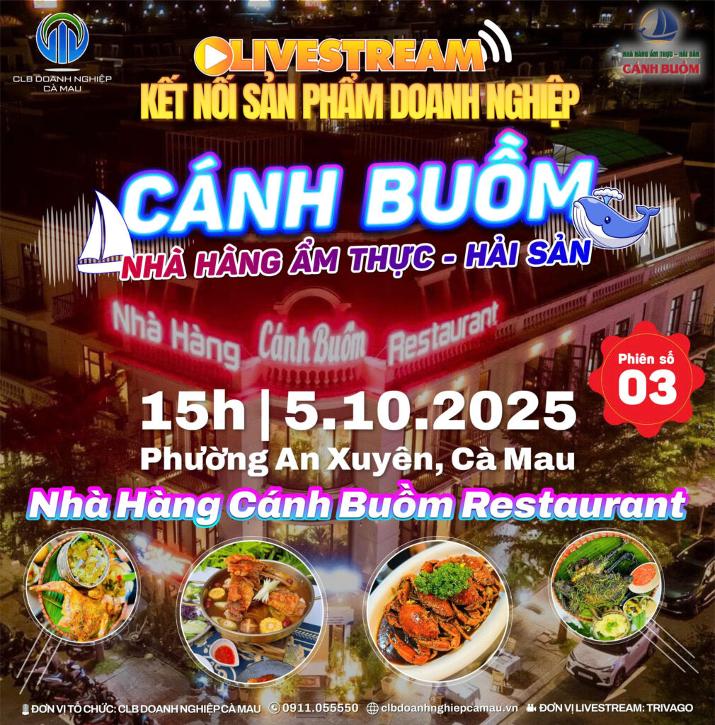 CLB Doanh nghiệp Cà Mau tổ chức Livestream Kết nối Sản phẩm phiên số 02, giới thiệu đặc sản cua Cà Mau từ thương hiệu Trinh Cua, diễn ra lúc 19h30 ngày 25/9/2025.CLB Doanh nghiệp Cà Mau tiếp tục tổ chức Livestream Kết nối Sản phẩm – Phiên số 02 nhằm quảng bá đặc sản […]