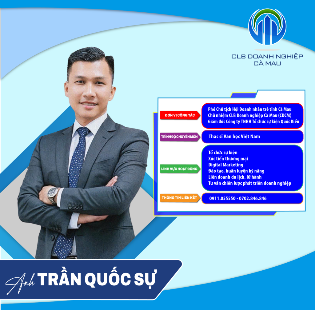Thông tin ban Chủ nhiệm CLB Doanh nghiệp Cà Mau Anh TRẦN QUỐC SỰ Đơn vị công tác: – Phó Chủ tịch Hội Doanh nhân trẻ tỉnh Cà Mau – Chủ nhiệm CLB Doanh nghiệp Cà Mau (CDCM) – Giám đốc Công ty TNHH Tổ chức sự kiện Quốc Kiều Trình độ chuyên môn: Thạc […]